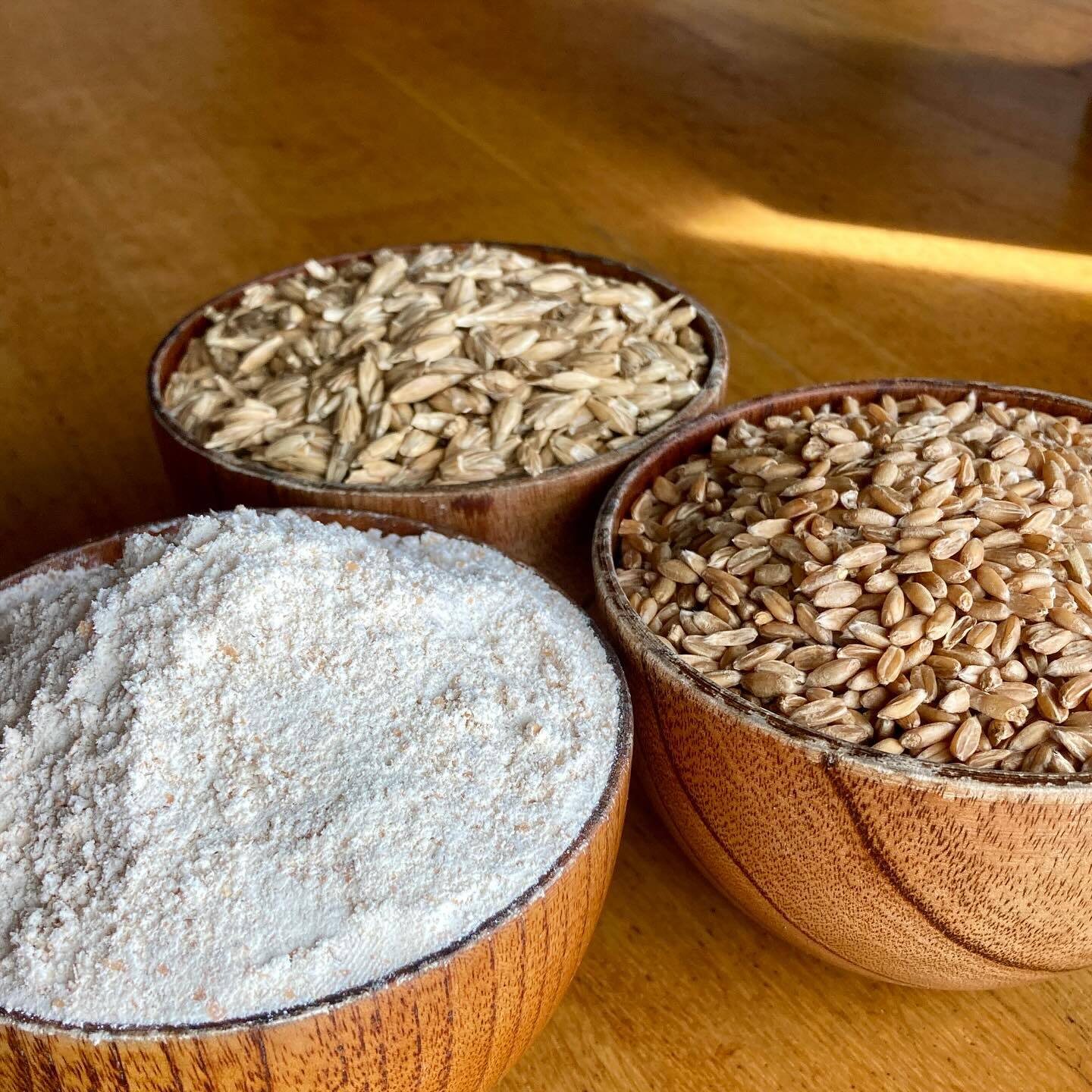 2025年度、収穫・製粉した、長野県麻績村産のスペルト小麦石臼挽全粒粉です。